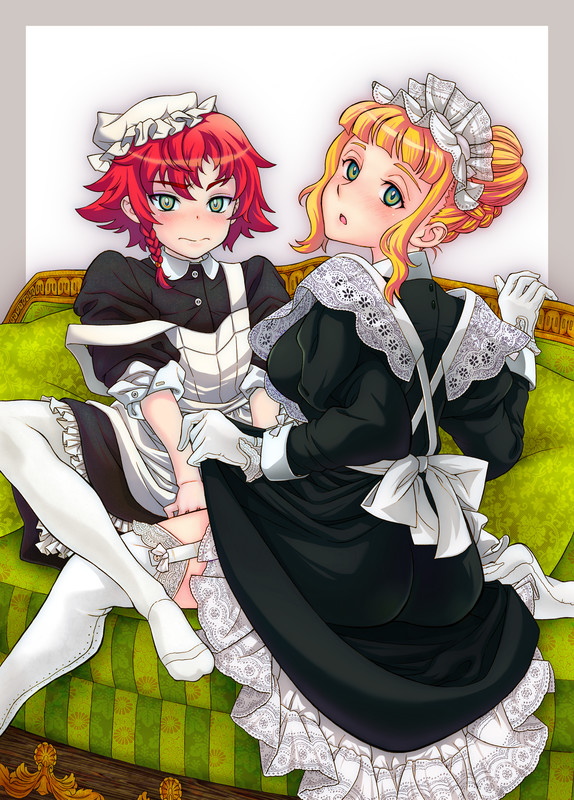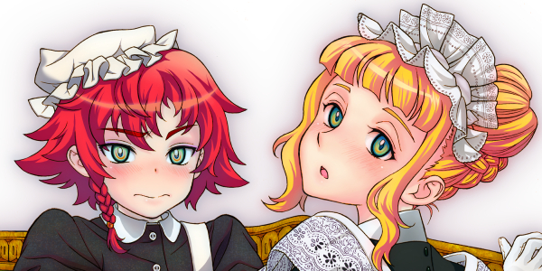 [R-18] 落書きのつもりがある程度描いてしまった。 伯爵家女中伝のトリスさんとリッタちゃんで現代の制服っぽい感じ(´エ`*) 髪型は適当~( ̄ω ̄ ;) pic.twitter.com/cVxkM53zMG